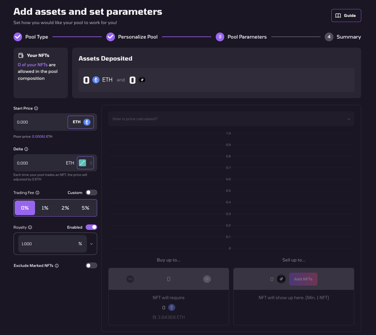 * Set the number of NFTs your pool can buy up to and you will need to deposit the corresponding ETH amount to support future buys.